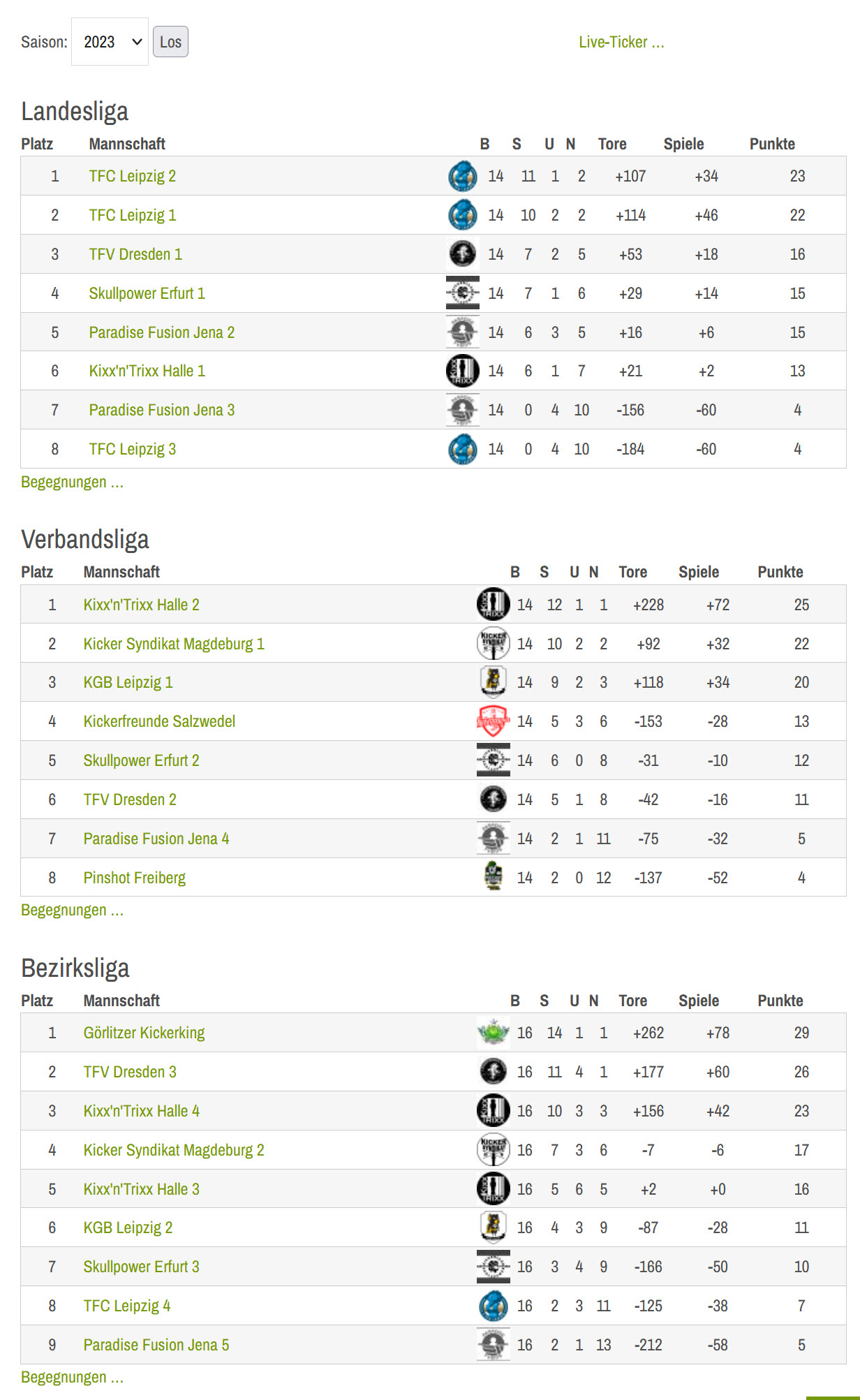 Ergebnisse Ligabetrieb 2023